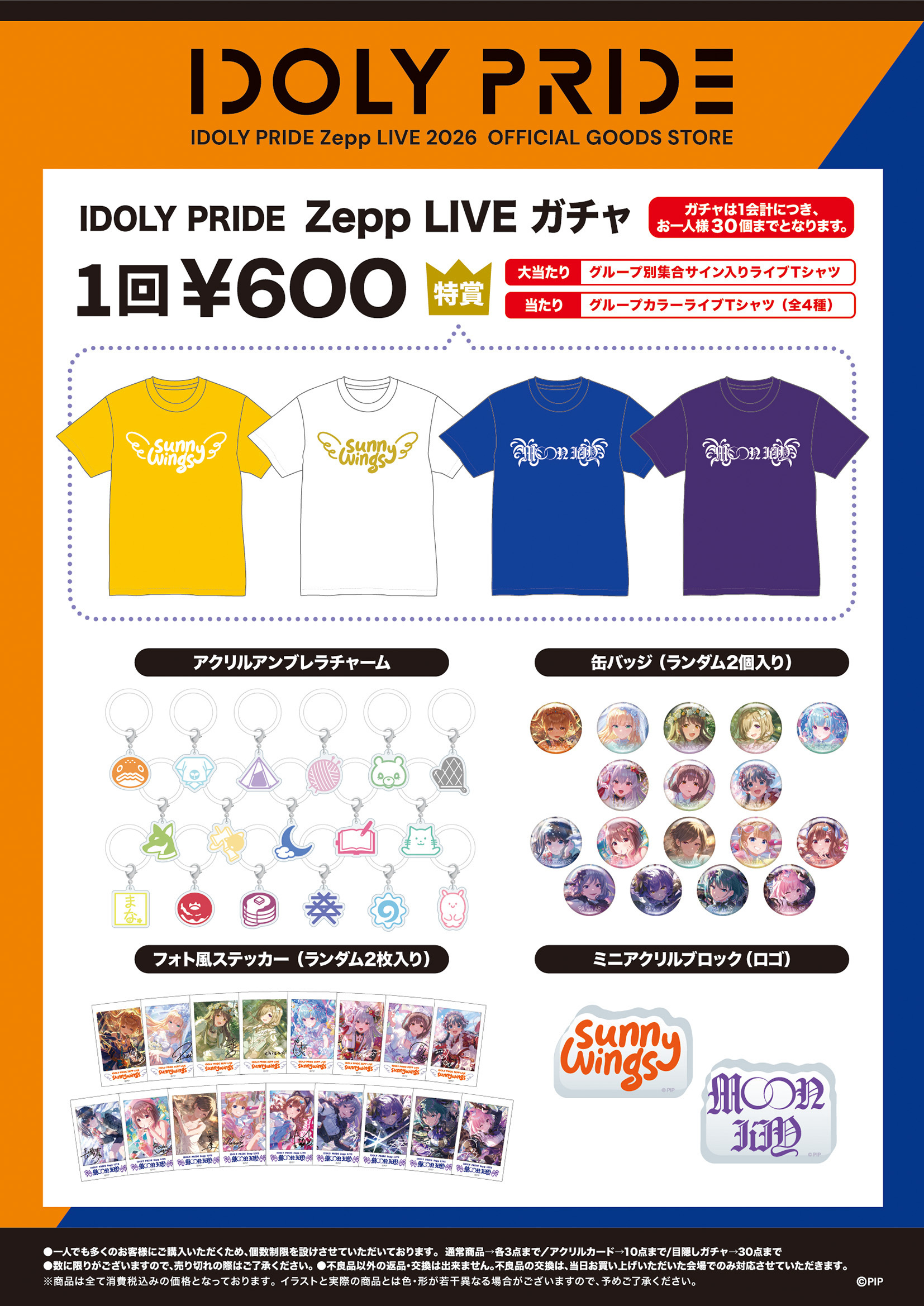 2026年2月22日(日)開催の「LAWSON presents IDOLY PRIDE Zepp Osaka Bayside LIVE sunny wings」会場物販のお知らせを致します。